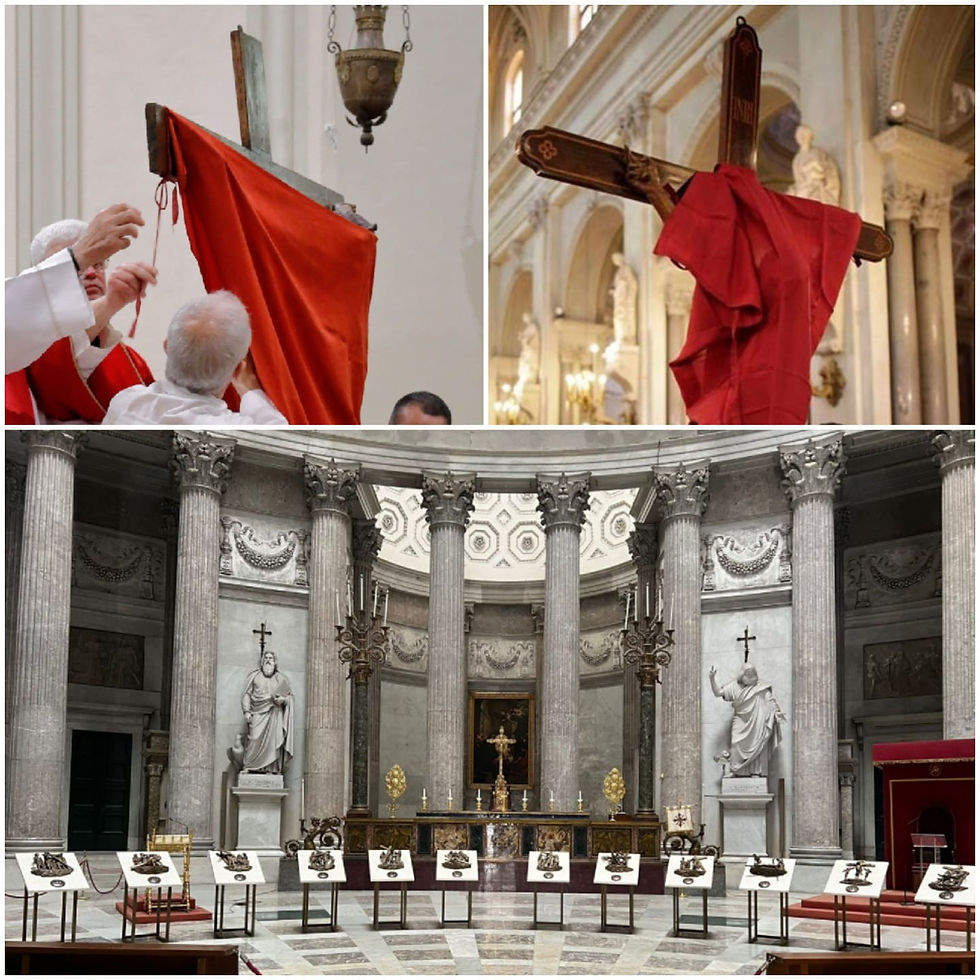 When I was in Pompeii, I experienced an amazing service and an unusual happening for me. First, they organized a via cruces for children in Piazza Giovanni XXIII in the territory of Santuario della Beata Vergine Maria del Santo Rosario di Pompei. The scouts prepared their cross way, with their paintings, prayers, etc. Another really breaking experience was during the procession of the veiled cross to the altar. I saw many people sad, pensive, and crying. But this was nothing compared to one lady who ran out in front of the cross and started shouting, crying, asking Jesus why he was leaving us, not letting him, stopping him to continue going on the cross. It was an unbelievable experience, as if I went back in time to the passion in Jerusalem!